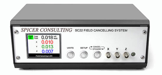当今高精电子束设备对环境磁场及其动态变化是非常敏感的。环境磁场使电子束产生偏移,从而导致设备分辨率和测量精度的减低。SC22系统是一种三维空间内的交流磁场补偿系统,通过传感器感知空间环境中交流磁场及其变化量,控制器通过三维空间线圈来提供反磁场,抵消环境磁场给电子束设备带来的影响,恢复应有的分辨率和精度。