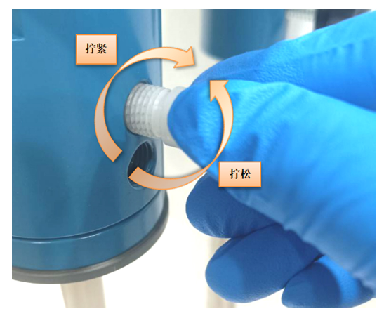 (1)用手握住碳刷组件的白色塑料部分,将旧碳刷从设备上拧下。