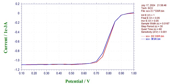 1、DCDSR与某SR的起始电位基本一致,表示在电化学开始阶段,两者的响应基本一致